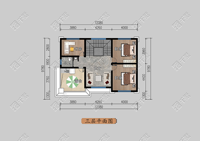 图纸层高:1层3.6米、2层3.3米、3层3.3米,总高12.75米