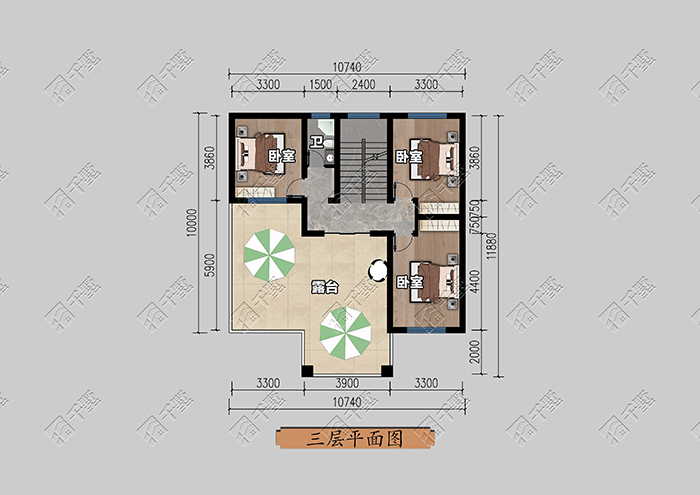 图纸层高:1层3.6米、2层3.3米、3层3.0米,总高12.22米