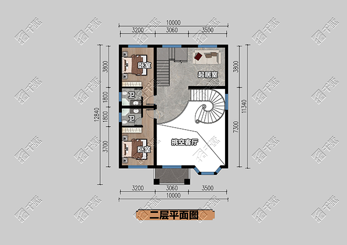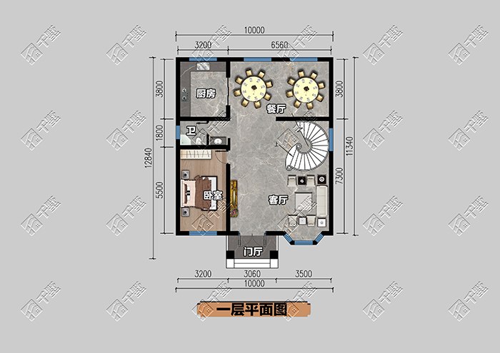 图纸层高:1层3.6米、2层3.4米、3层3.3米,总高12.85米