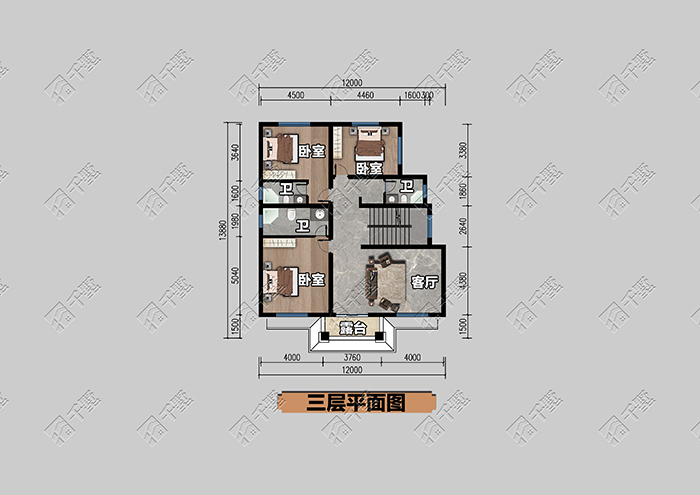 图纸层高:1层3.6米、2层3.3米、3层3.3米,总高12.91米
